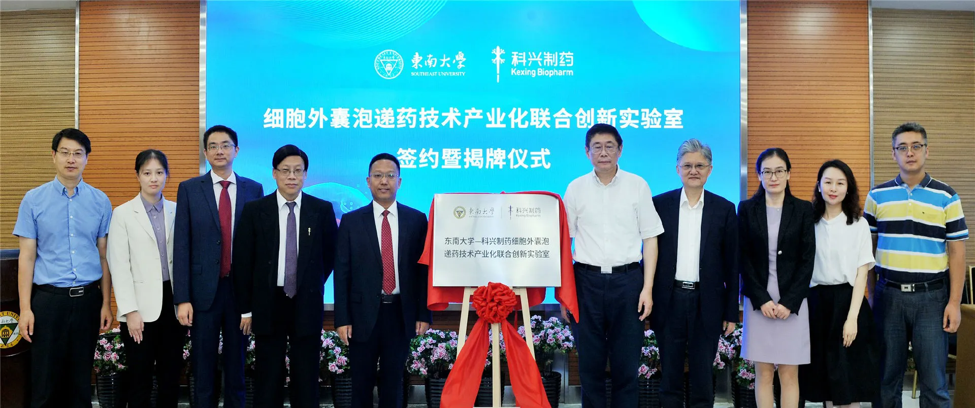 On September 27, the signing & opening ceremony of "Innovation Laboratory for Commercial Production of Extracellular Vesicle-based Drug Delivery Technology" (the Innovation Laboratory) was successfully held in Nanjing. The Innovation Laboratory was jointly founded by Shenzhen Kexing Pharmaceutical Co., Ltd., a wholly-owned subsidiary of Kexing Biopharmaceutical Co., Ltd. (Kexing Biopharm), and Southeast University. Now, the two parties will cooperate to promote the commercial production and clinical application research of extracellular vesicle-based drug delivery technology.