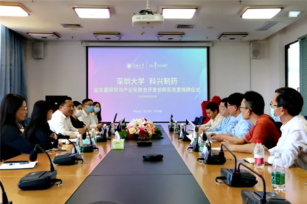 4月29日下午,深圳大学-科兴制药益生菌研究与产业化联合开发创新实验室揭牌仪式在深圳大学医学部会议室顺利举行。深圳大学医学部主任朱卫国、深圳大学过敏反应和免疫学研究所所长刘志刚、科兴制药总经理赵彦轻、副总经理马鸿杰等出席了揭牌仪式。
