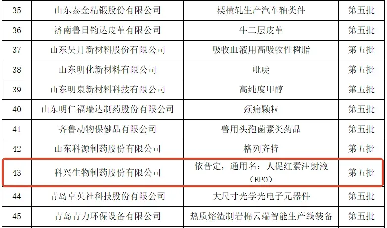 近日,山东省工业和信息化厅公布了《第八批山东省制造业单项冠军企业和通过复核的第二、五批制造业单项冠军企业名单》,经限定性条件论证审核、行业审查、专家论证、现场核查、网上公示等系列程序,科兴制药成功通过复审,并荣获“山东省制造业单项冠军企业”称号。