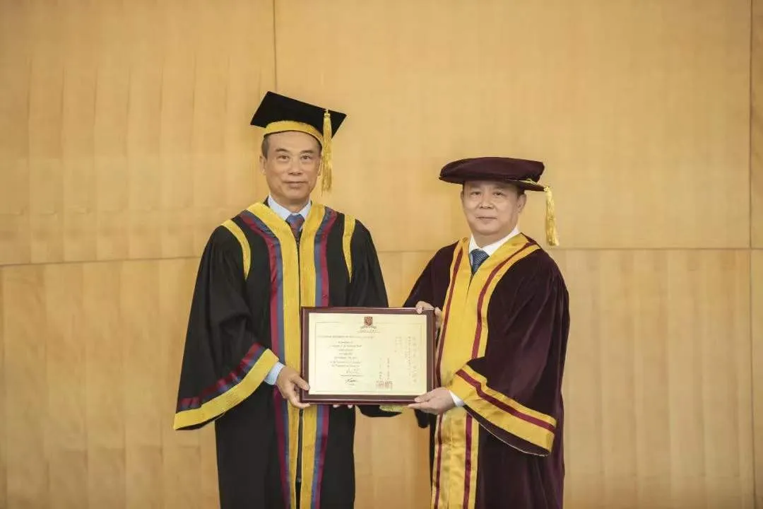 港中大(深圳)校长徐扬生教授为邓学勤先生颁授荣誉院士证书及纪念牌