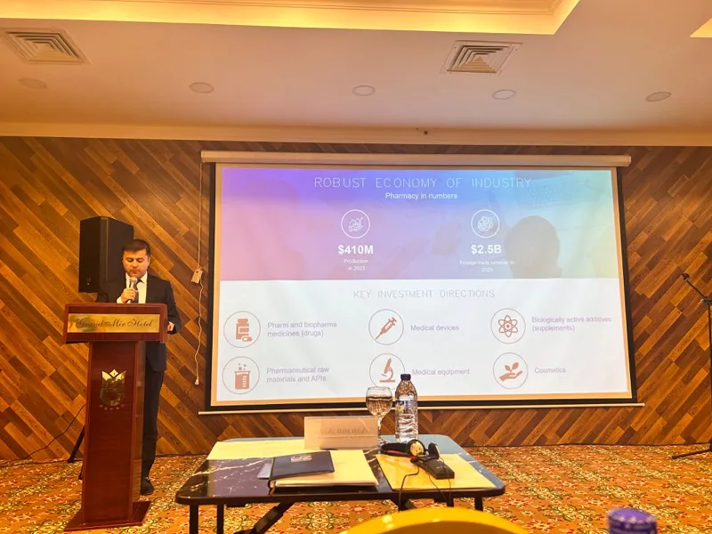 2024年4月15日,第一届中乌生物制药商务与合作论坛在塔什干GRAND MIR HOTEL盛大举行。乌兹别克斯坦卫生部、乌兹别克斯坦国家制药工业发展局、乌兹别克斯坦TOP20药企及英德生物、中国生物制药、Sinopharmtech等企业代表参加了此次盛会。科兴制药作为特邀嘉宾,发表了“一带一路--生物药之中乌合作机会探讨”的主题演讲。